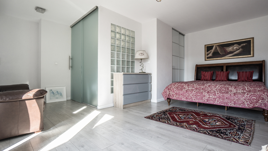 na górze oddzielny dodatkowy pokój może posłużyć jako garderoba oraz  spora sypialnia z wyjściem na taras.