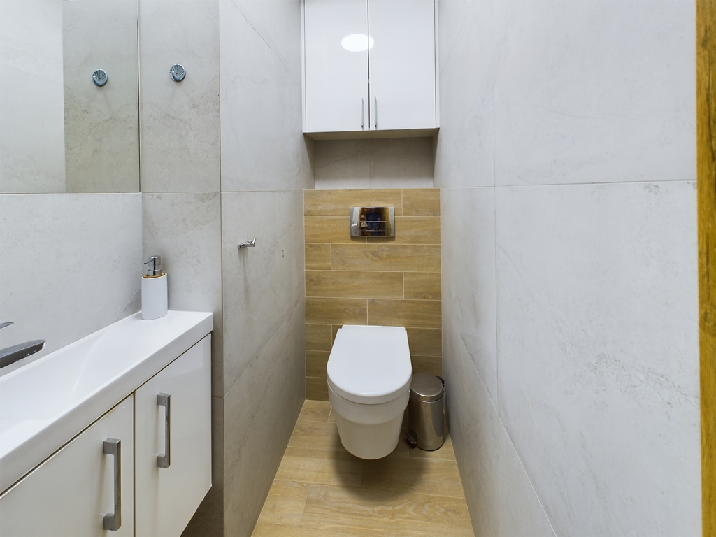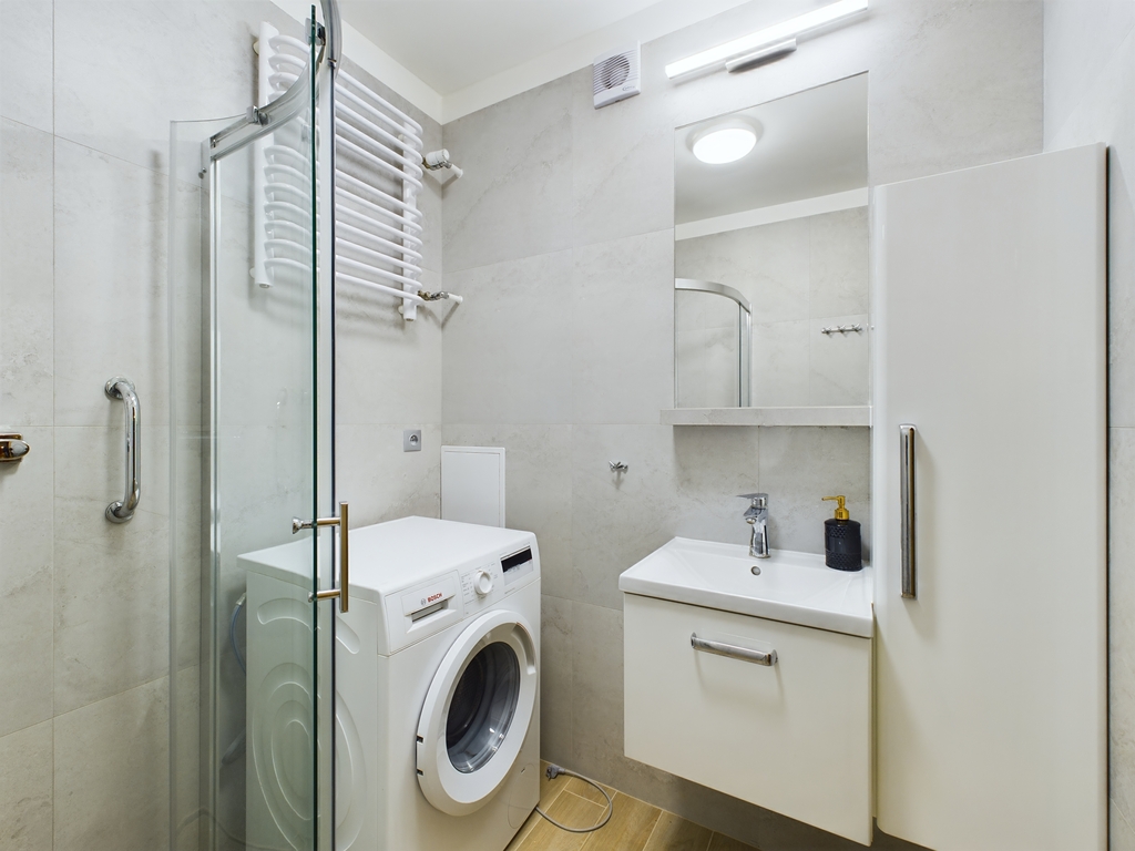 Łazienka oraz WC  są bezpośrednio po remoncie wykończone w nowoczesnym stylu. Na podłodze położone są płytki gresowe, wysokiej jakości armatura oraz ceramika sanitarna. Wymieniona została instalacja wodno-kanalizacyjna.