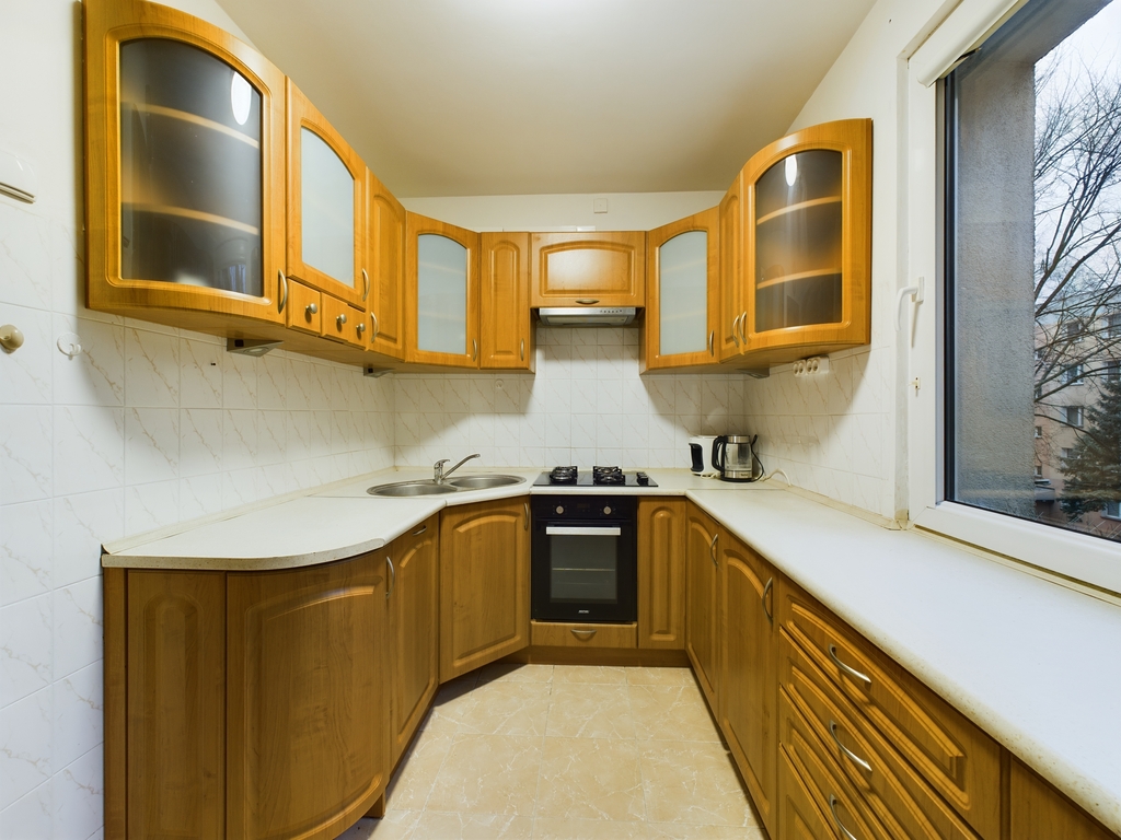 Kuchnia - meble w zabudowie kuchennej, zmywarka, okap.