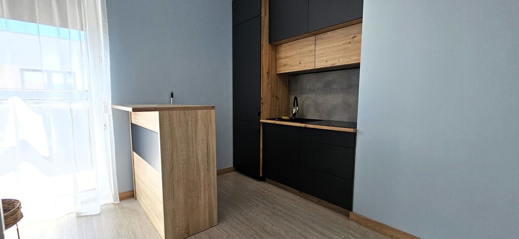 Mieszkanie wyposażone zostało w zewnętrzne rolety (w pokoju dziennym z aneksem kuchennym), co zapewnia komfort termiczny i prywatność. Istnieje możliwość doposażenia lokalu w łóżko sypialniane – do uzgodnienia z właścicielem.