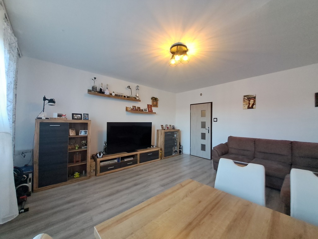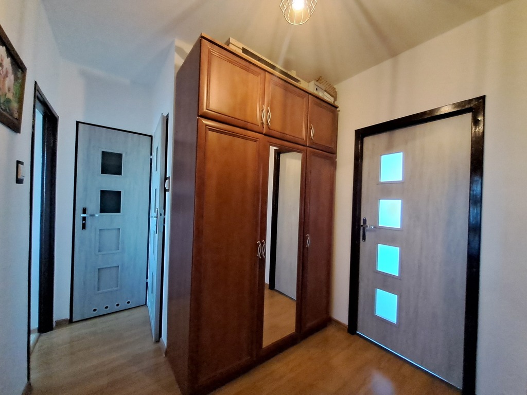 Mieszkanie o powierzchni 49,97 m2 usytuowane jest na czwartym piętrze w niskim bloku i składa się z :