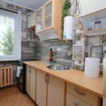 Kuchnia wyposażona w zabudowę kuchenną wraz ze sprzętem AGD (lodówka, piekarnik, płyta elektryczna).