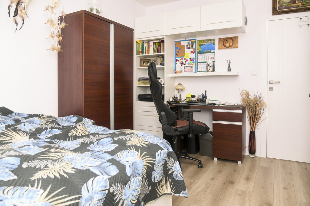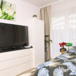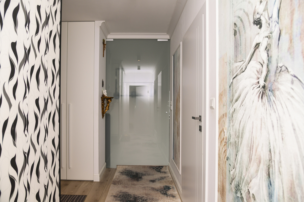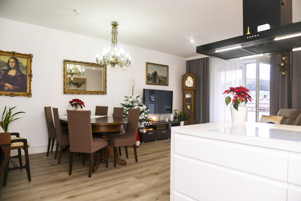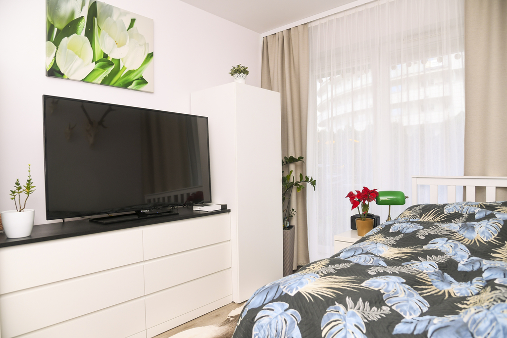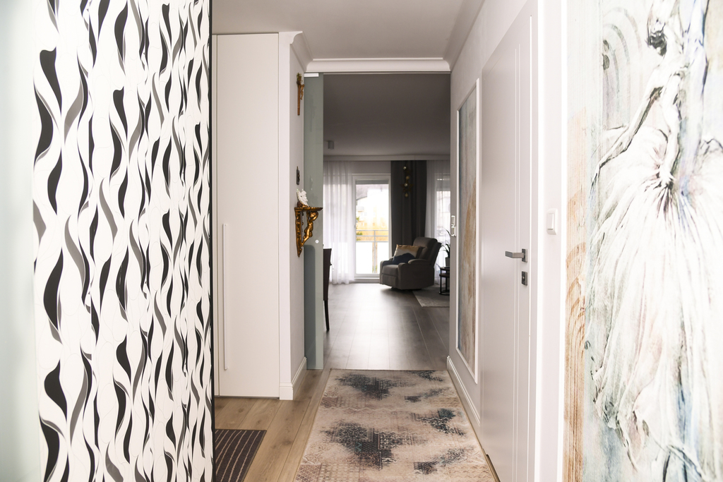 Apartament wykończony w ponadczasowym stylu, z wykorzystaniem materiałów bardzo dobrej jakości. W salonie wygodna strefa wypoczynku oraz miejsce na wygodny duży stol idealny do wspólnego spędzania czasu. Aneks kuchenny w jasnych barwach, wyposażony we wszystkie niezbędne urządzenia AGD, wyraźnie oddzielony od salonu wyspą. Dwie sypialnie, w jednej wbudowana szafa. Łazienka z prysznicem w gustownej glazurze. Garderoba z wygodnym i przemyślanym projektem zabudowy. 2 szafy w korytarzu.