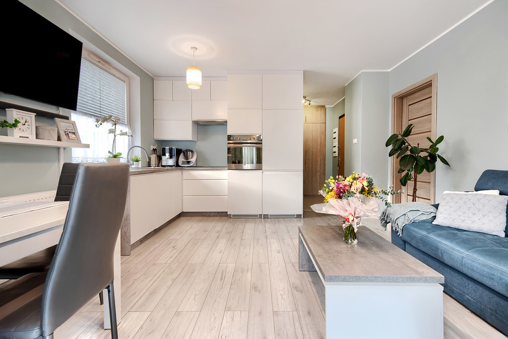- kuchnia w pełni wyposażona ( piekarnik, płyta indukcyjna, okap, lodówka , zmywarka )