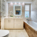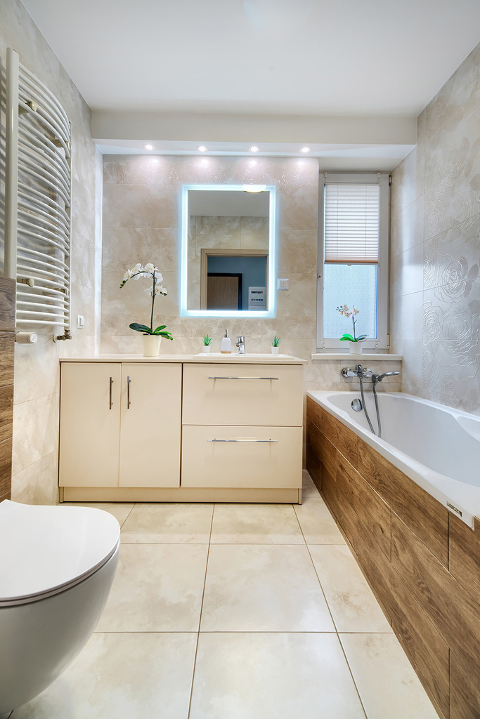 - łazienka wyposażona w wygodną wannę oraz pralkę