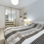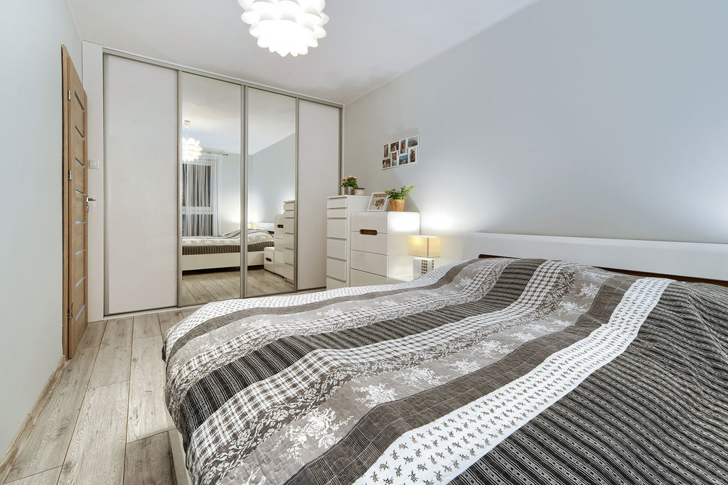 - w sypialni zrobiona na specjale zamówienie przestronna szafa garderobiana