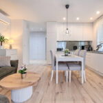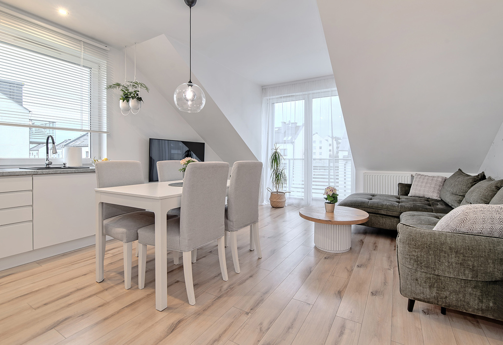 przestronnego salonu z aneksem kuchennym z wyjściem na balkon i klimatyzacją (23,5m2 + 3,7m2)
