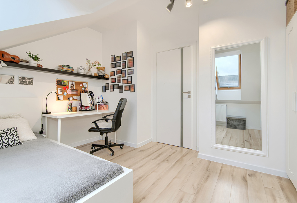 - wysokiej jakości panele podłogowe położone w technologii bez dylatacji (brak progów)