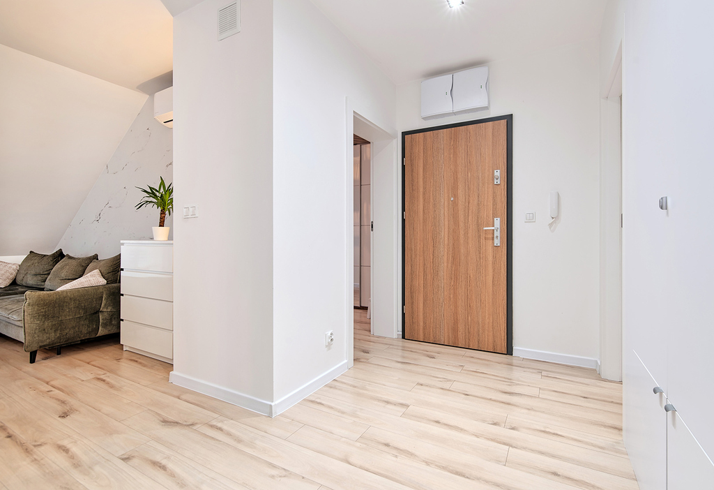 - rolety w oknach dachowych antywłamaniowe drzwi wejściowe.