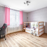 - podłogi: panele i płytki;