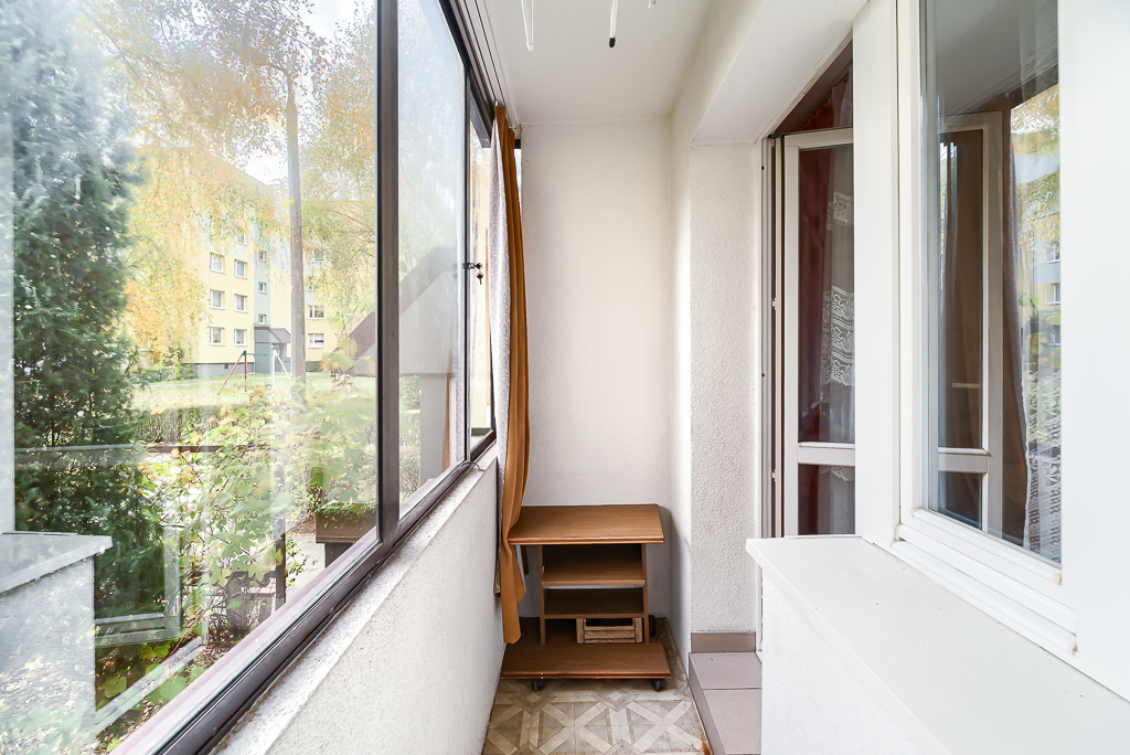 Do mieszkania przynależy balkon typu loggia oraz piwnica o powierzchni 11,55 m².
