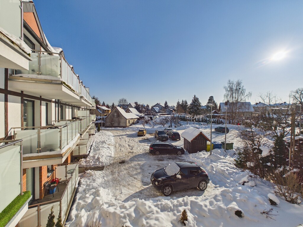 Mieszkanie posiada duży balkon z widokiem na okolicę.