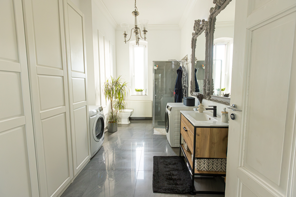 Apartament został wykończony z najwyższą dbałością o każdy detal, przy użyciu wysokiej jakości materiałów, które podkreślają jego wyjątkowy charakter. Starannie dobrane elementy wystroju, szlachetne wykończenia powierzchni oraz harmonijna kolorystyka tworzą elegancką, spójną przestrzeń, która zachwyca zarówno estetyką, jak i funkcjonalnością. To wnętrze zaprojektowane z myślą o wymagających klientach, ceniących luksus, ponadczasowy styl i najwyższy standard wykonania.