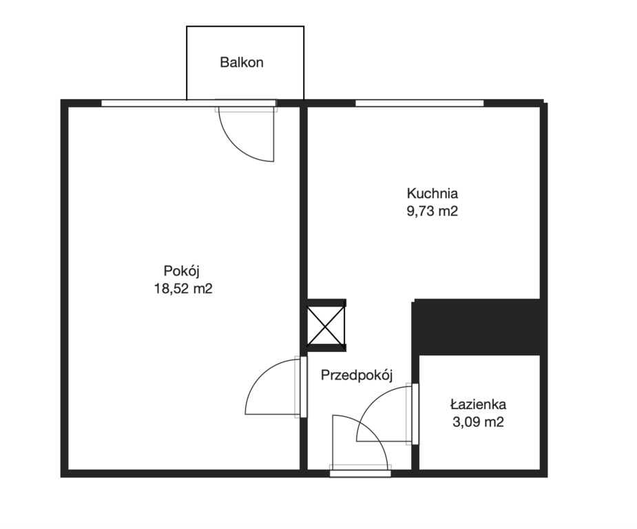 Kawalerka z balkonem, oddzielna kuchnia, 35,80m2