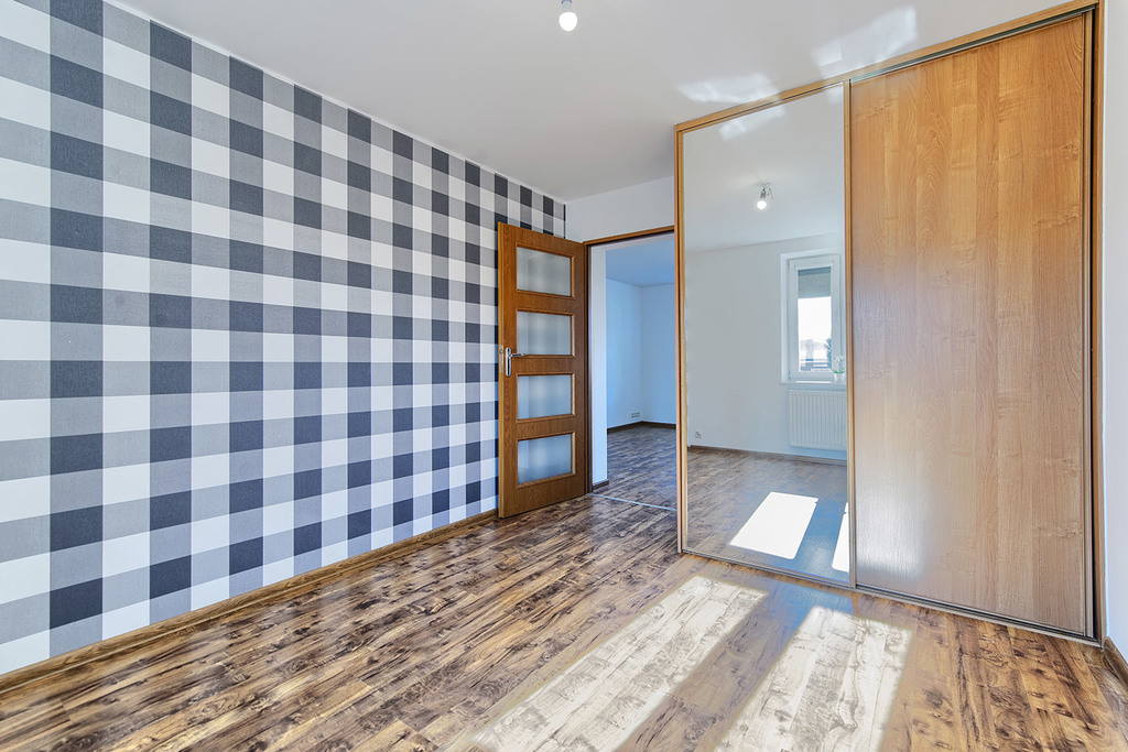 - w sypialni znajduję się duża szafa garderobiana