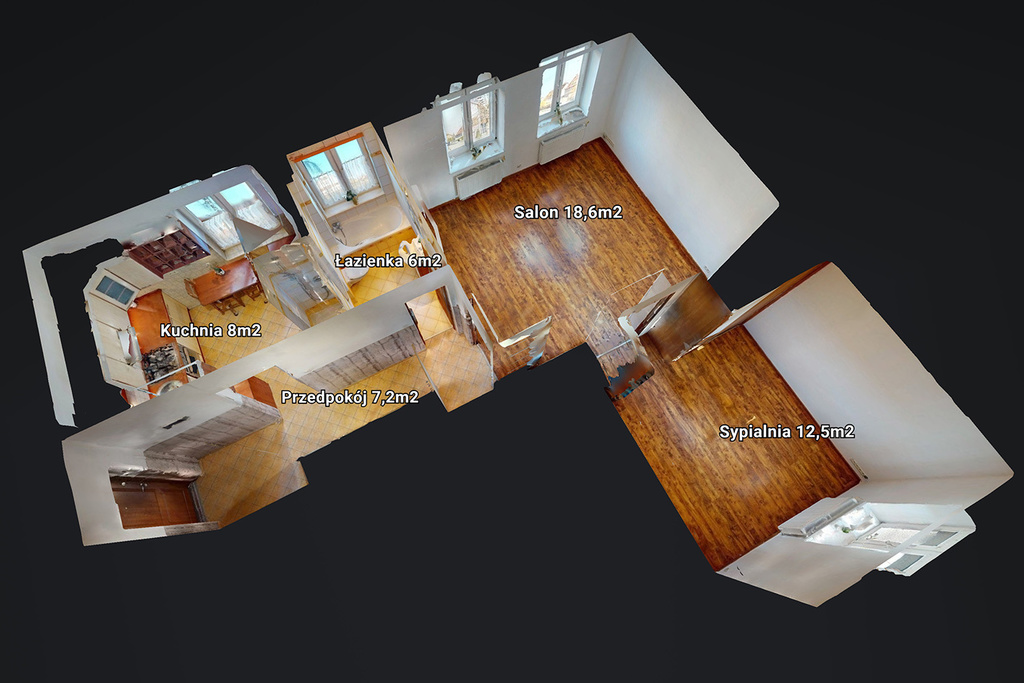 - salonu z dwoma podwójnymi oknami ( 18,6m2 )