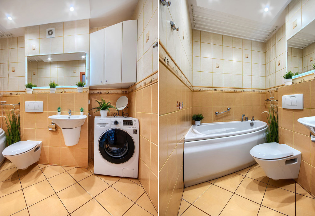 - łazienka wyposażona w wygodną wannę oraz pralkę
