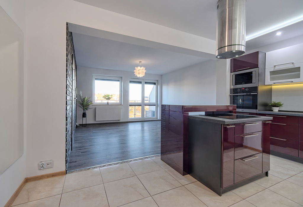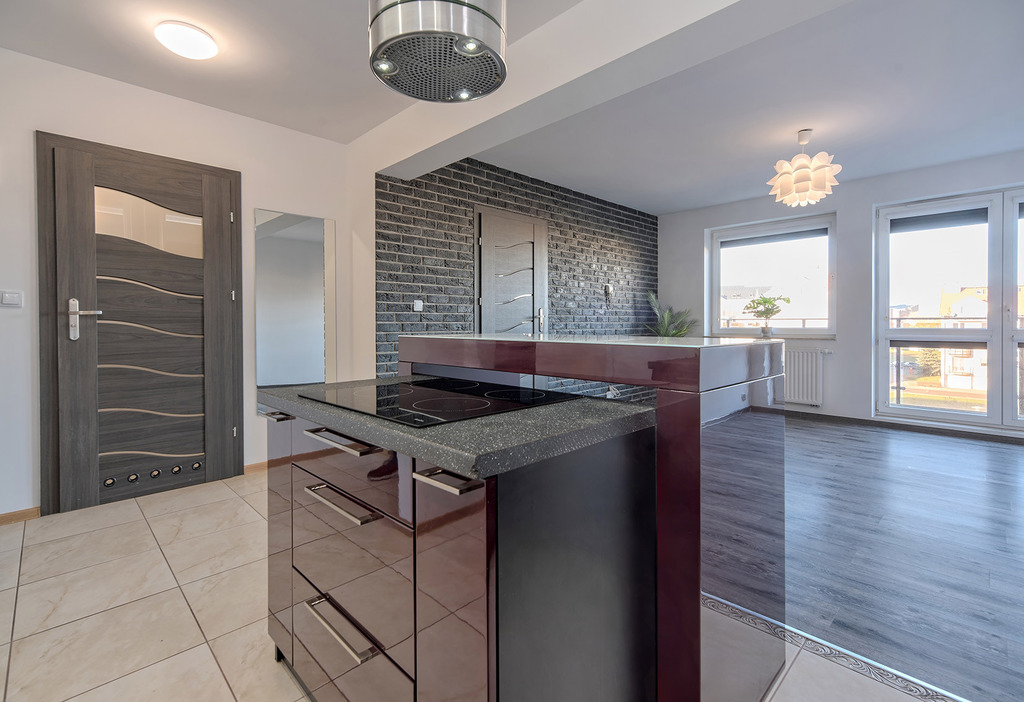 - kuchnia z wyspą wyposażona ( piekarnik, płyta indukcyjna, okap, mikrofalówka)