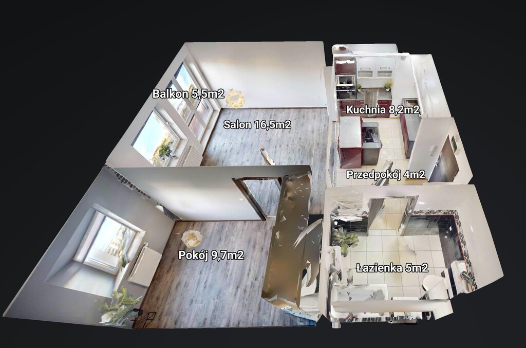- przestronnego salonu z wyjściem na balkon (16,5m2)+(5,5m2)
