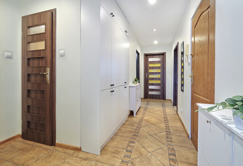 - Przedpokój: Przemyślane rozwiązania z funkcjonalnymi szafami w zabudowie.