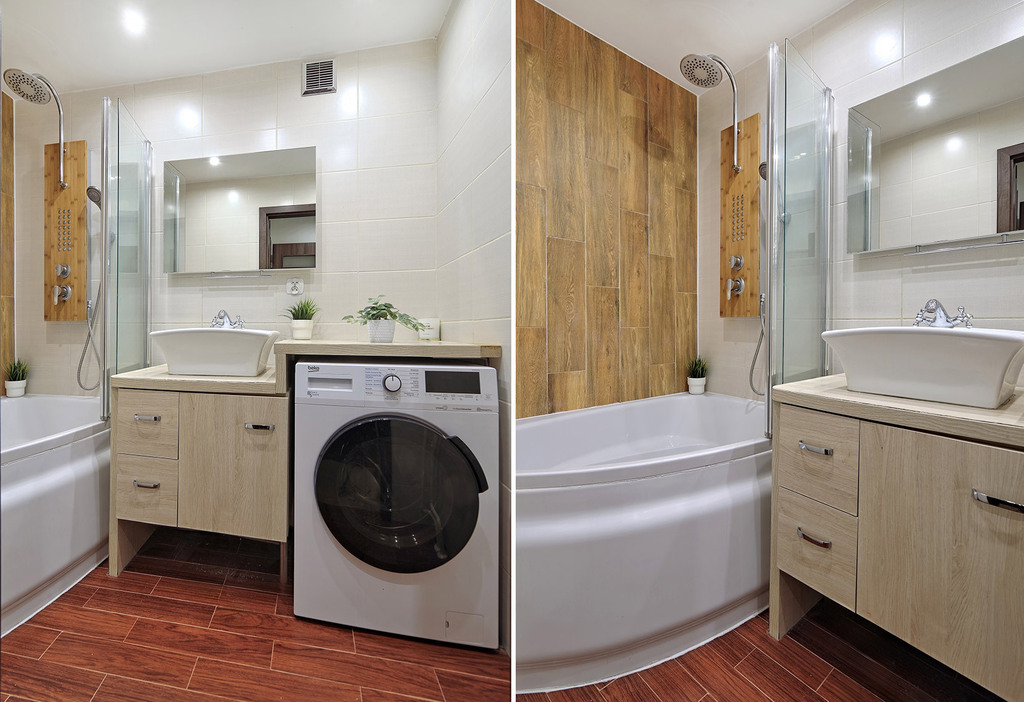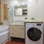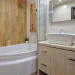 - Łazienka: Wyposażona w przestronną wannę z funkcją prysznica, łączącą komfort kąpieli z wygodą prysznica.