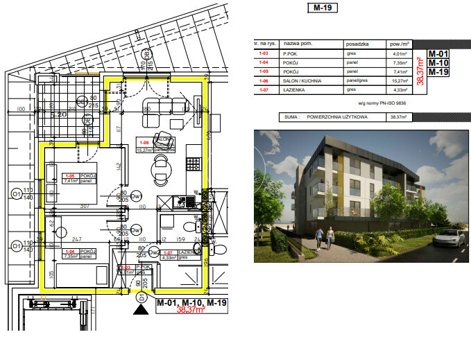 Układ Pomieszczeń (38,37 m²):