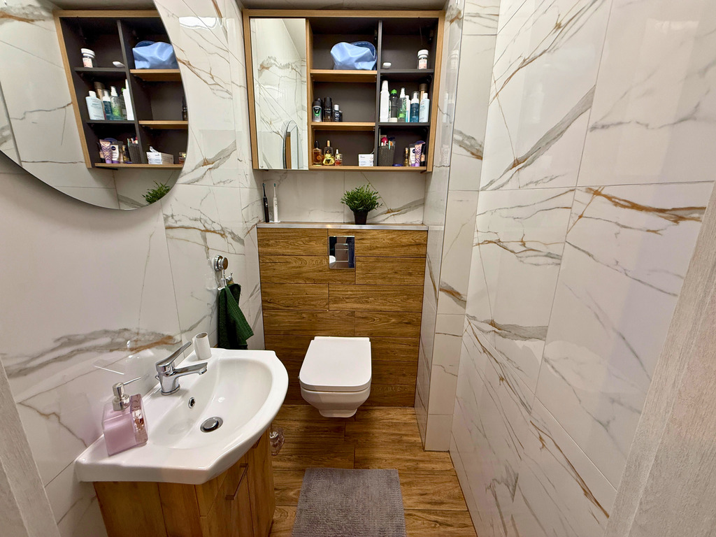- Bardzo niski czynsz – tylko 450 zł/miesiąc (w tym 330 zł gaz, 70 zł administracja, 30 zł fundusz remontowy, 20 zł ubezpieczenie)