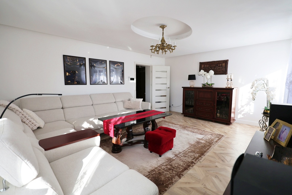 Nieruchomość została wykończona w bardzo dobrym standardzie, z pełnym umeblowaniem i kompletnym wyposażeniem — gotowa do natychmiastowego zamieszkania.