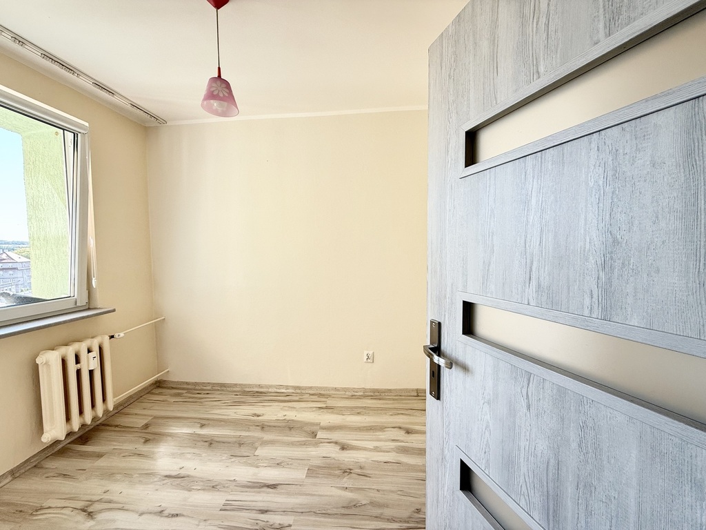 W mieszkaniu wyposażona kuchnia oraz łazienka, pokoje puste do umeblowania.
