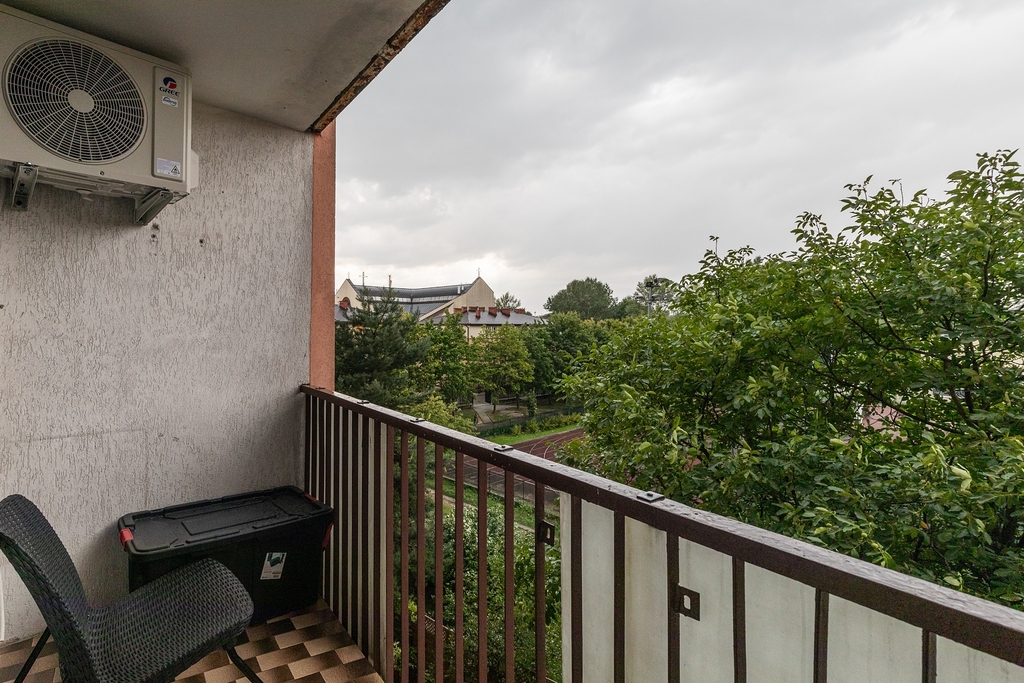 Warto zaznaczyć, że mieszkanie posiada duży balkon, który jest idealnym miejscem na relaks na świeżym powietrzu. Ponadto, klimatyzacja zapewnia komfort w gorące dni, a opcja wynajęcia miejsca parkingowego to znakomita wygoda w centrum Warszawy.