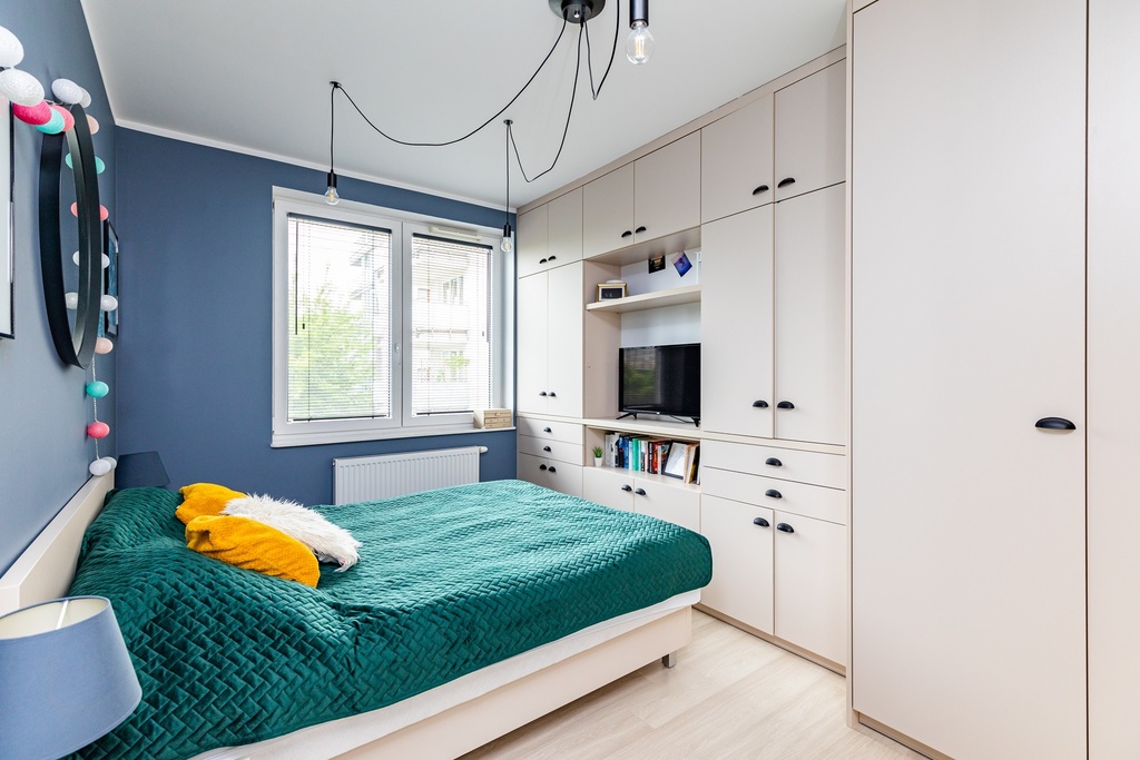 * komfortowa sypialnia z dużą ilością miejsca do przechowywania