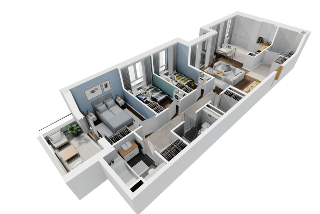 Od kompaktowych mieszkań 35 m² idealnych dla singli, po przestronne, 4-pokojowe lokale do 100 m² – stworzone z myślą o rodzinach. Każde mieszkanie posiada prywatną przestrzeń zewnętrzną w postaci balkonu, loggii lub ogródka.