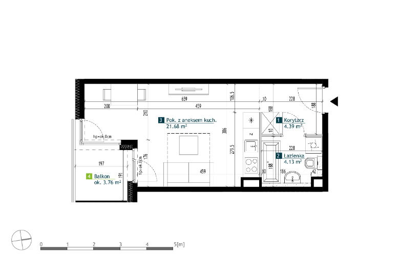 W budynku zaplanowano 49 mieszkań wyposażonych w ogródki, balkony oraz przestronne tarasy. Na Osiedlu dostępne będą lokale o powierzchni od 28 do 142 m², z układami od jednego do pięciu pokoi. Warto zwrócić uwagę na tarasy, które będą przynależeć do mieszkań położonych na najwyższych piętrach.