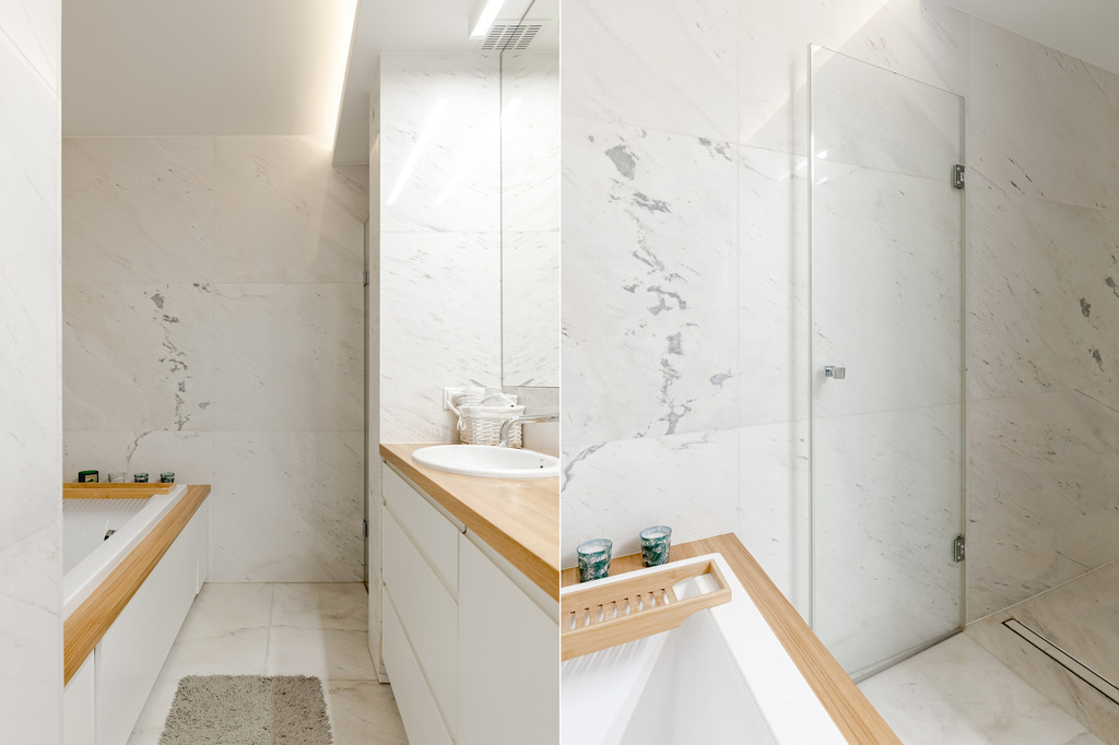•lita podłoga dębowa, marmur "Sivec Macedonia" (koszt ok 1600 zł za m2)