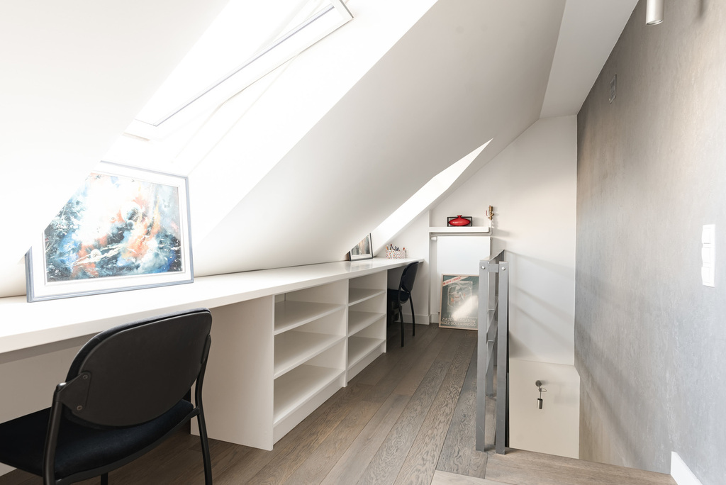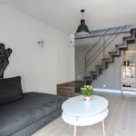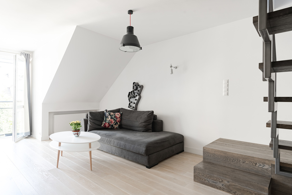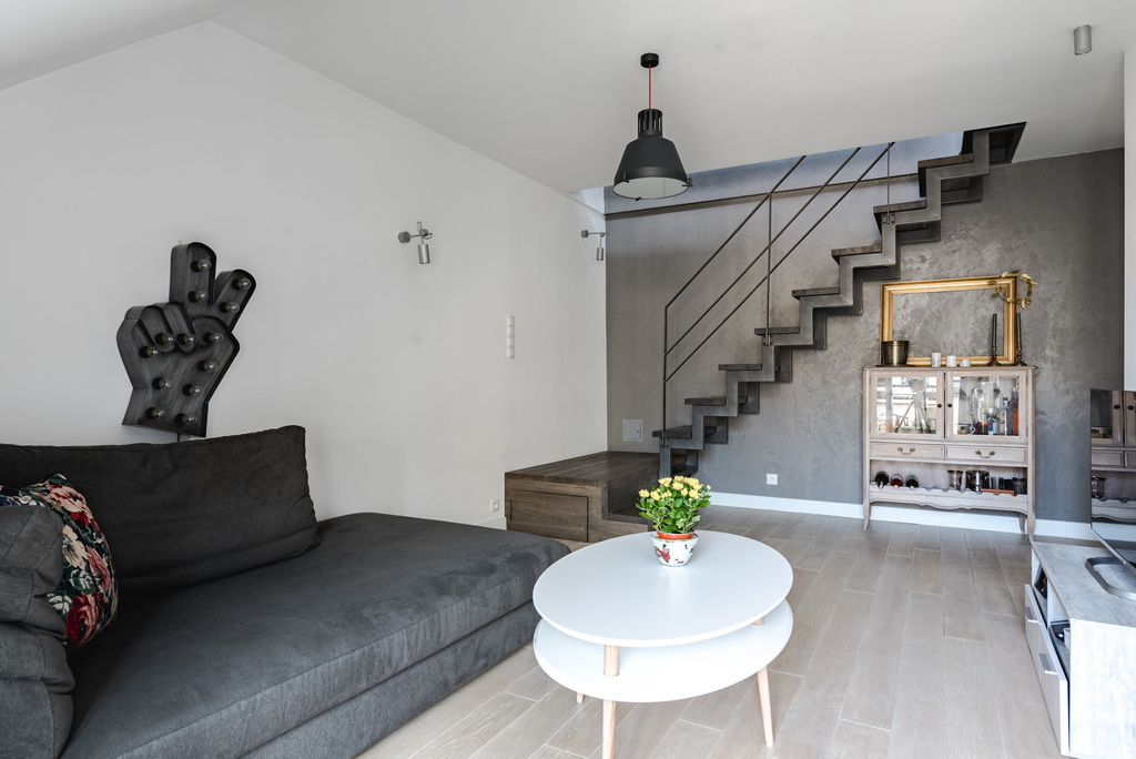 Klimatyczna, dwupoziomowa nieruchomość w cichej i zielonej okolicy o łącznej powierzchni 84,5m2 (po podłodze ok 105m 2) mieszcząca się na ostatnich dwóch piętrach niskiego bloku z początku lat 90 tych.