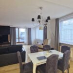 Apartament o powierzchni 137 m² składa się z: przestronnego salonu z aneksem kuchennym i wydzieloną jadalnią, dwóch sypialni, holu, garderoby, łazienki oraz osobnej toalety.