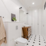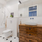 Łazienka z wanna i prysznicem, funkcjonalne szafy