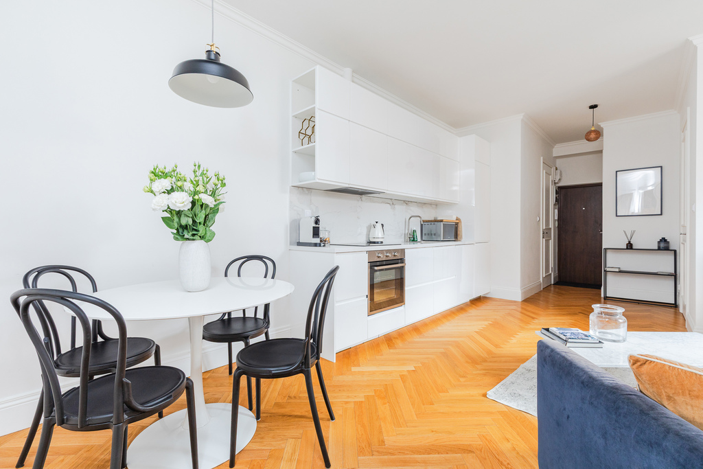 - w mieszkaniu w cenie jest zabudowa stała oraz biały montaż w łazience. Sprzęty ruchome( meble) mogą pozostać w mieszkaniu za dodatkową, oddzielnie ustaloną opłatą