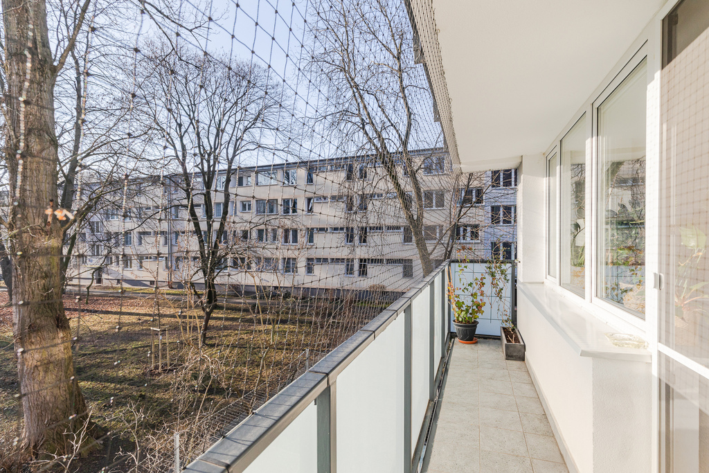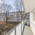 -  Dużego balkonu z widokiem na drzewa i zieleń