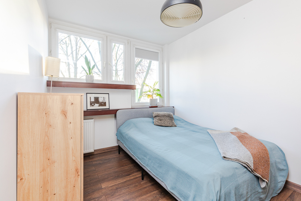 Spacious and bright 3-room apartment for rent, with an area of 55 m², located on the 1st floor of building in Saska Kępa, on Międzynarodowa Street.