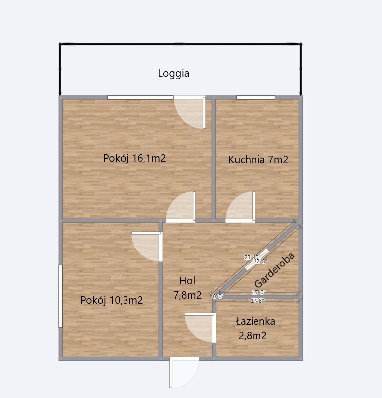 - Przedpokój z szafą wnękową 7,8 m2