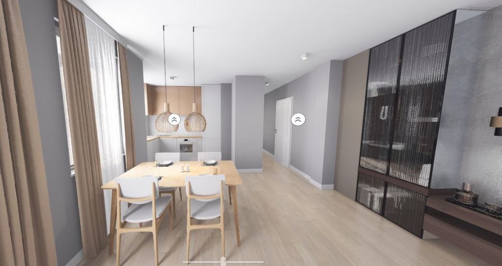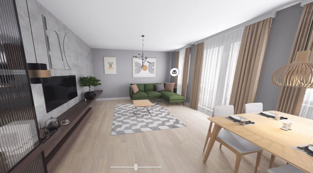 Wirtualny spacer przedstawia możliwości aranżacyjne mieszkania.
