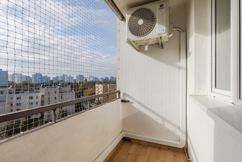 Mieszkanie po generalnym remoncie. Nadaje się od razu do zamieszkania. Salon duży i przestronny, jest możliwość podzielenia go na dwa pokoje. Z salonu wyjście na spory balkon. Okna skierowane na stronę południowo wschodnią, dzięki czemu mieszkanie jest widne. Przed oknami przestrzeń, sąsiedzi nie zaglądają do okien. W salonie została zamontowana klimatyzacja.