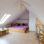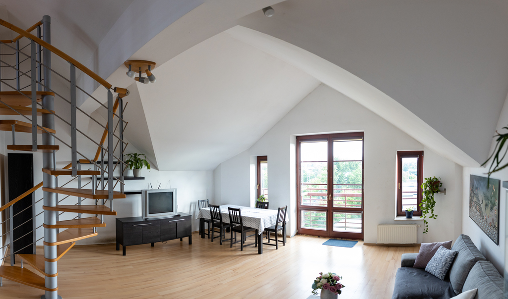Każde z pomieszczeń ma swoje okno – kuchnia i antresola mają okna dachowe. Z salonu