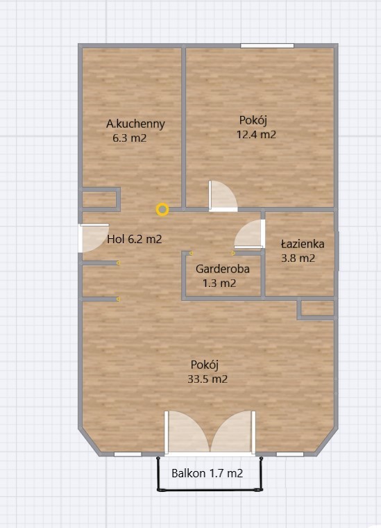 - kuchnia 6,3 m2 – po podłodze ma około 12m2