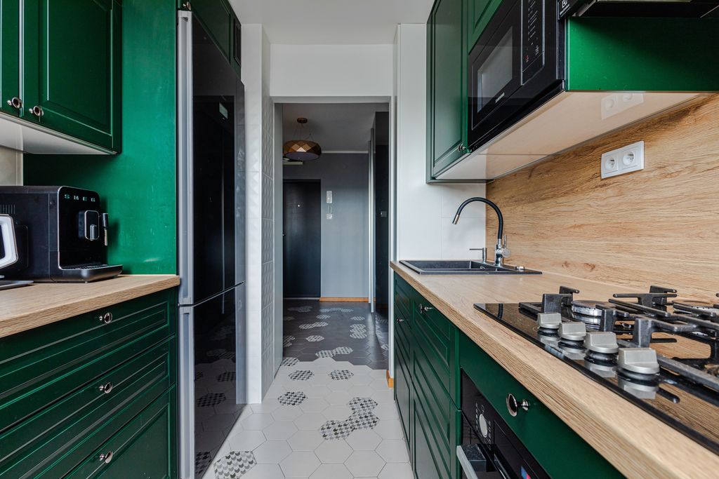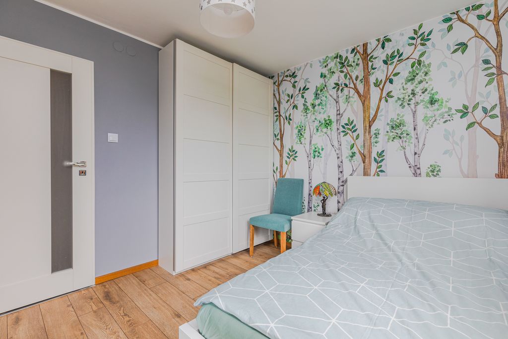 Lokal przeszedł generalny remont, większość prac wykonanych w 2023 roku. W kuchni nowy sprzęt AGD z poprzedniego roku - lodówka, zmywarka, piekarnik, płyta gazowa, okap. W salonie na podłogach deska drewniana. W przedpokoju, kuchni i łazience na podłodze gres. W dwóch sypialniach na podłodze nowe panele wysokiej jakości. Na ścianach i suficie gładzie. W mieszkaniu wymieniona została instalacja elektryczna, piony wod.-kan. i grzejniki. Drzwi wejściowe też wymienione na antywłamaniowe.