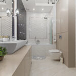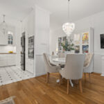 - Strefa dzienna (33,4 m²) – salon z jadalnią i kuchnią