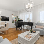 Układ mieszkania zapewnia komfort codziennego życia – część dzienna sprzyja spotkaniom i wspólnemu spędzaniu czasu, a strefa sypialni gwarantuje ciszę i prywatność.