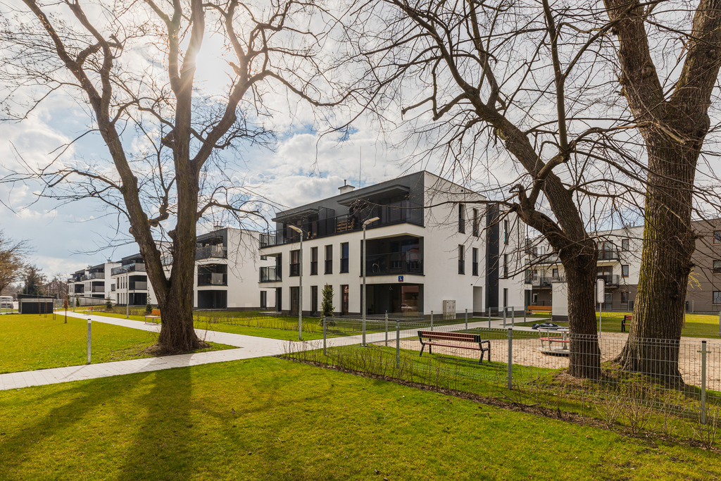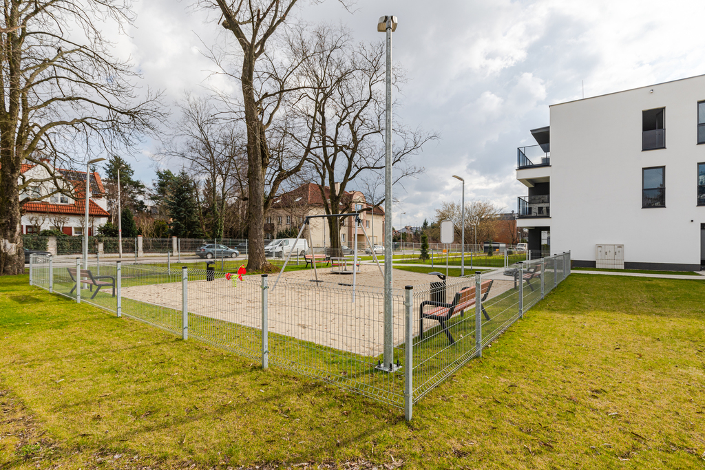 Na terenie inwestycji zaplanowano plac zabaw dla dzieci oraz elementy małej architektury takie, jak ławki, stojaki na rowery.
