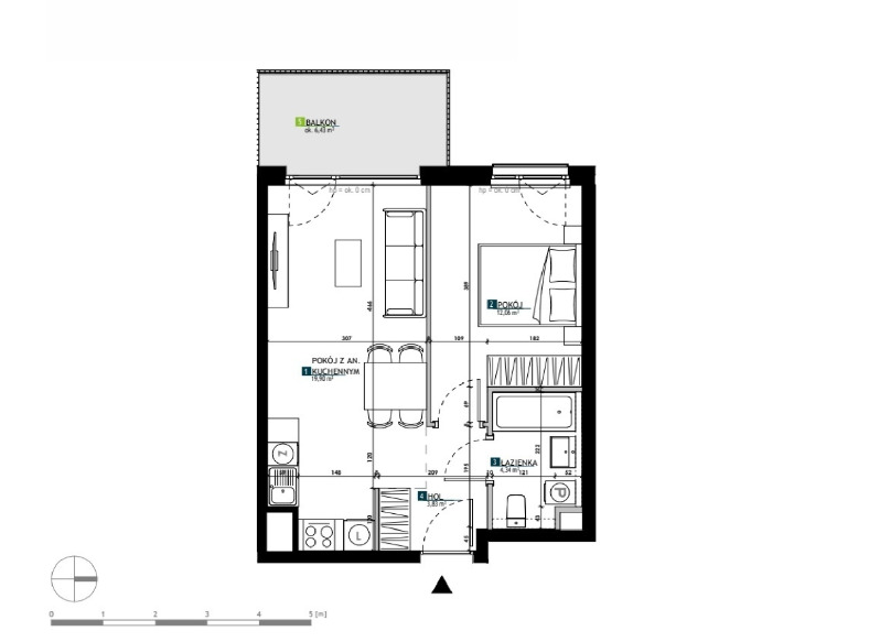 - Pokój z aneksem kuchennym - 19,90 m2